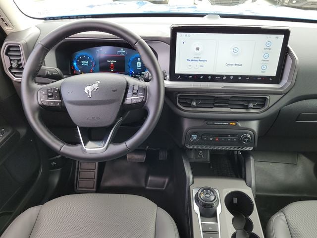 We are offering this 2025 Ford Bronco Sport, in Blue Metallic and Gray Leather, LOCAL TRADE, CLEAN CARFAX ONE OWNER!, Auto-dimming Rear-View mirror, Automatic temperature control, Electronic Stability Control, Equipment Group 400A, Garage door transmitter, Heated door mirrors, Heated front seats, Heated steering wheel, Leather Trimmed Front Bucket Seats, Memory seat, Power door mirrors, Power driver seat, Power passenger seat, Remote keyless entry, Steering wheel mounted audio controls, SYNC 4 w/Enhanced Voice Recognition, Telescoping steering wheel. CARFAX One-Owner. Clean CARFAX. Certified. EcoBoost 2.0L I4 GTDi DOHC Turbocharged VCT 8-Speed Automatic 4WD 21/27 City/Highway MPG Odometer is 3348 miles below market average!